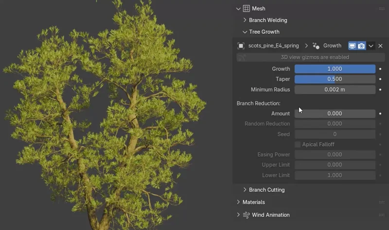 By hitting the Convert to Static button, your dynamically distributed leaves, flowers, or other particles seamlessly merge into the tree mesh, becoming an integral part of its form.